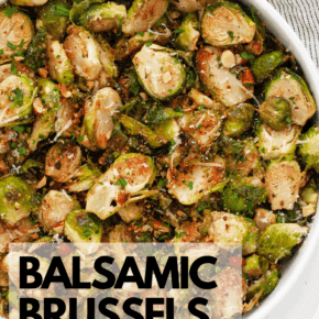 These roasted balsamic brussels sprouts are an easy fall-winter side dish. Tossed in a crunchy mix of toasted almond breadcrumbs, parmesan and fresh herbs, the sprouts turn out golden brown and crisp on the edges. This is a must-make vegetable side for the holiday season from Thanksgiving to Christmas.