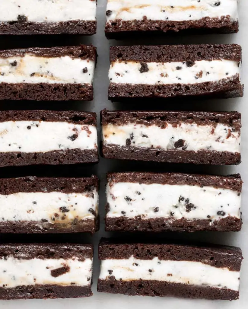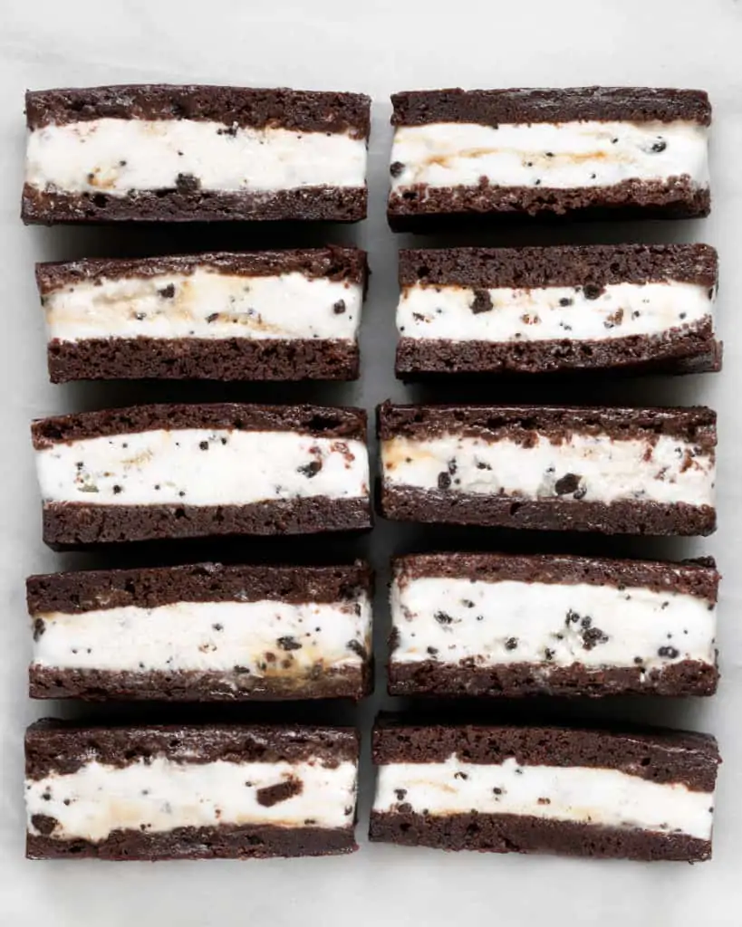 Dress up store-bought ice cream and make brownie ice cream sandwiches filled with your favorite ice cream flavor like vanilla, strawberry or cookies and cream.