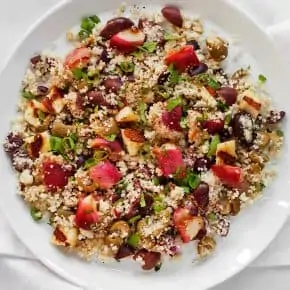 I serve grilled nectarine halloumi couscous both as a side and a vegetarian main. It’s also great for leftovers that can be devoured cold straight from the fridge.