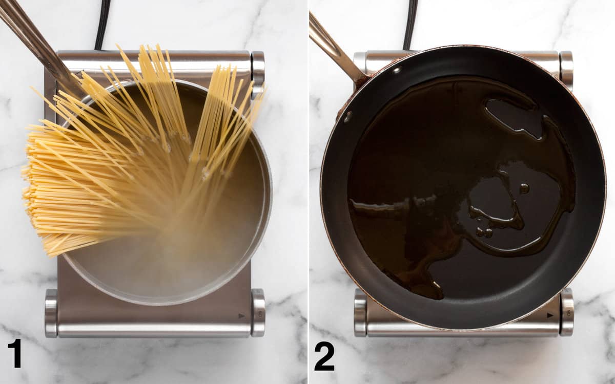 Have all your ingredients prepped and ready to go. For this dish, I give the same advice I would for a stir-fry. It cooks so fast that you won’t have time sneak in some slicing while you have the pot and the pan on the stove.