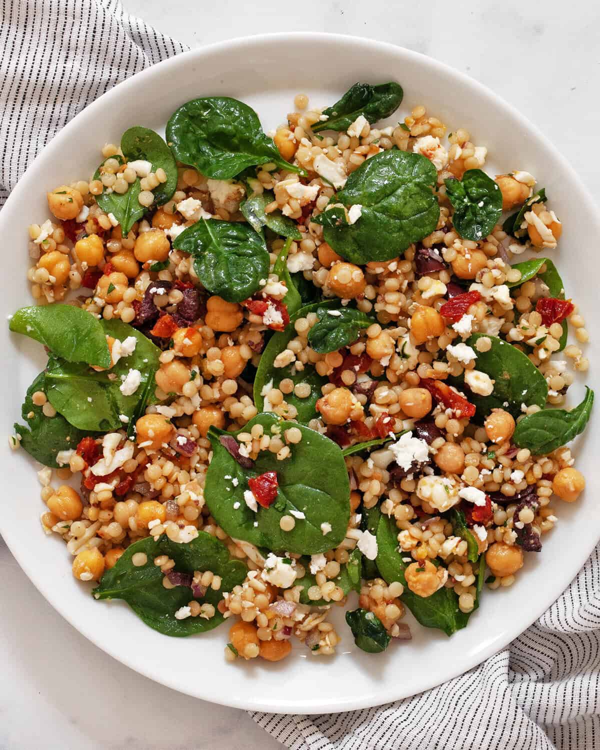 - Baby spinach: You can follow the quantity in the recipe, or add more greens if you want more lettuce than couscous. This is also a simple way to stretch leftovers into another meal.