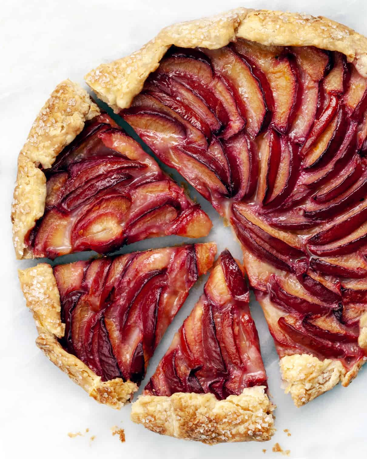 This plum galette is a freeform alternate to a tart that celebrates stone fruit season keeping all the focus on beautiful sliced ripe plums.