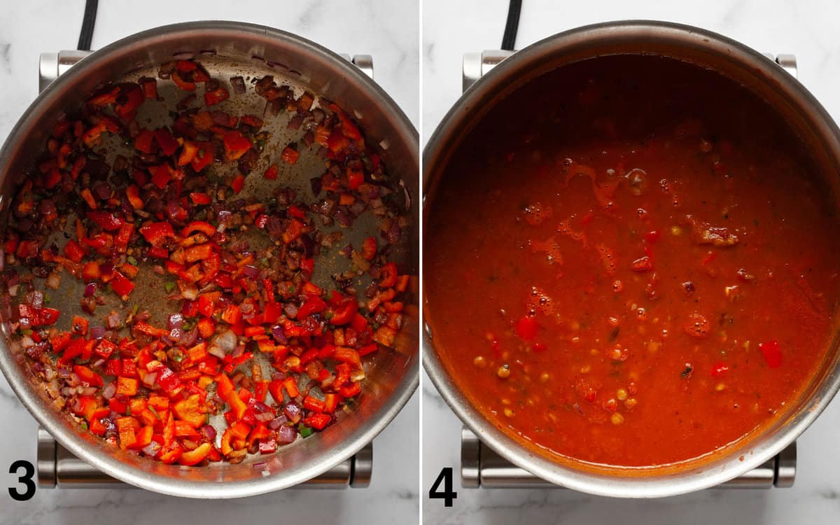 - As the chili simmers, add more liquid if you think it is thickening too fast and the lentils need more time to cook. You can use vegetable broth or even water.