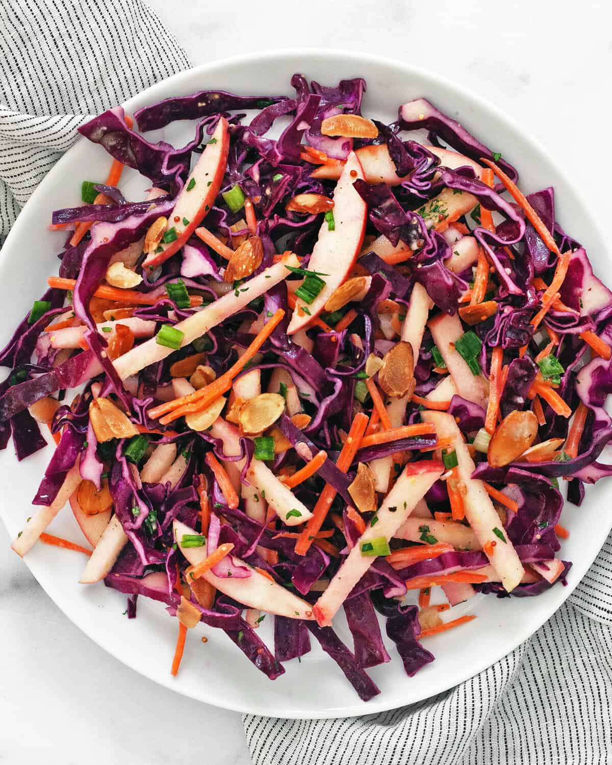 You can store the salad in an airtight container in the refrigerator up to 3 days. The cabbage and apples will lose a little of their crispness. Keep leftover dressing into a separate container. This will help it maintain more of its crunch. If you know you aren’t going to eat the entire salad at once, then don’t toss all of it in the vinaigrette.