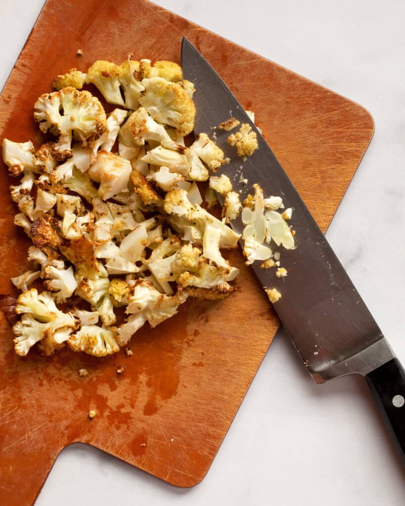 4. Roughly chop the bigger pieces of roasted cauliflower. You can leave the small to medium florets as is.