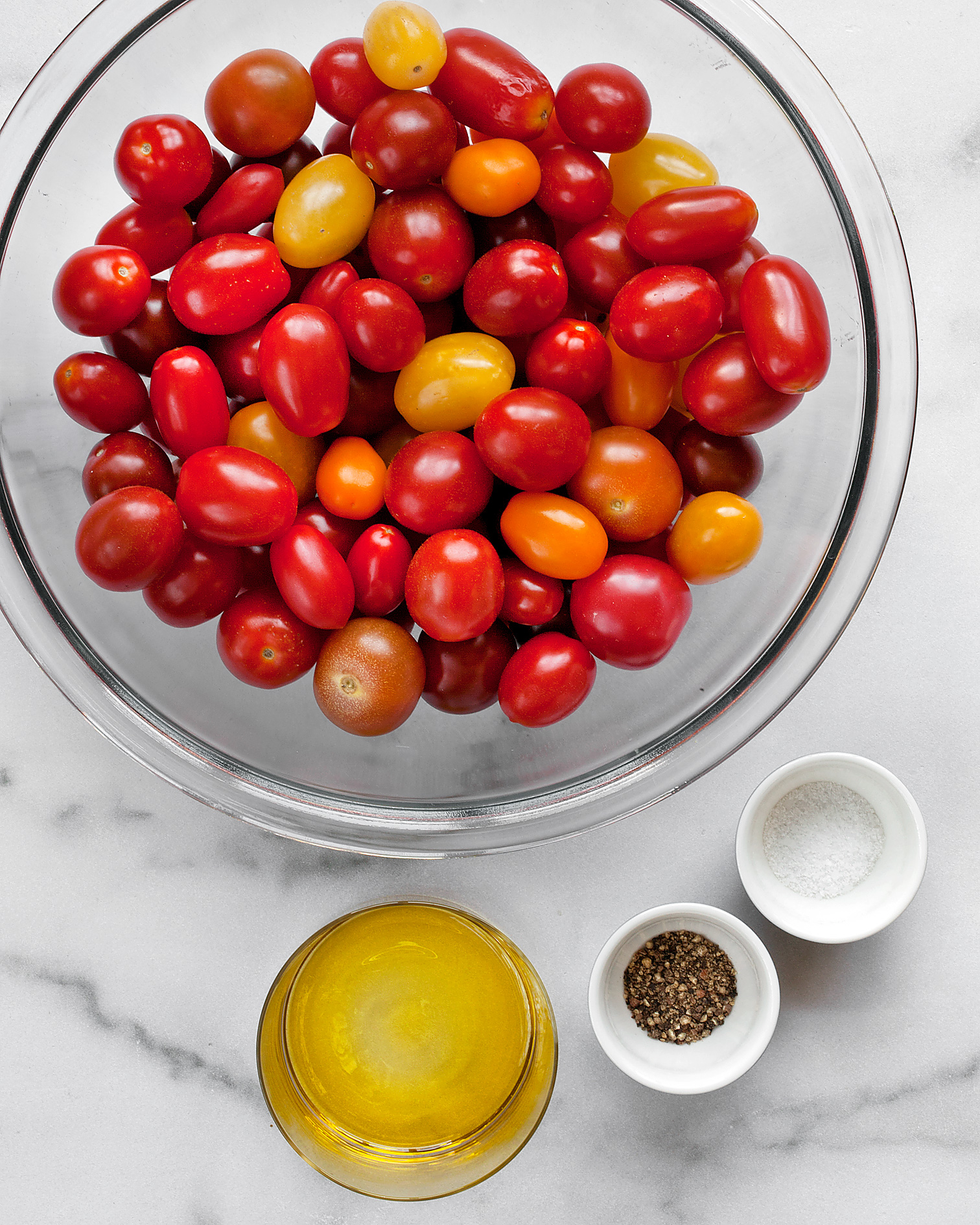 - Salt & pepper: In addition to drizzling the tomatoes with olive oil, I also sprinkle them with kosher salt and black pepper before they roast.