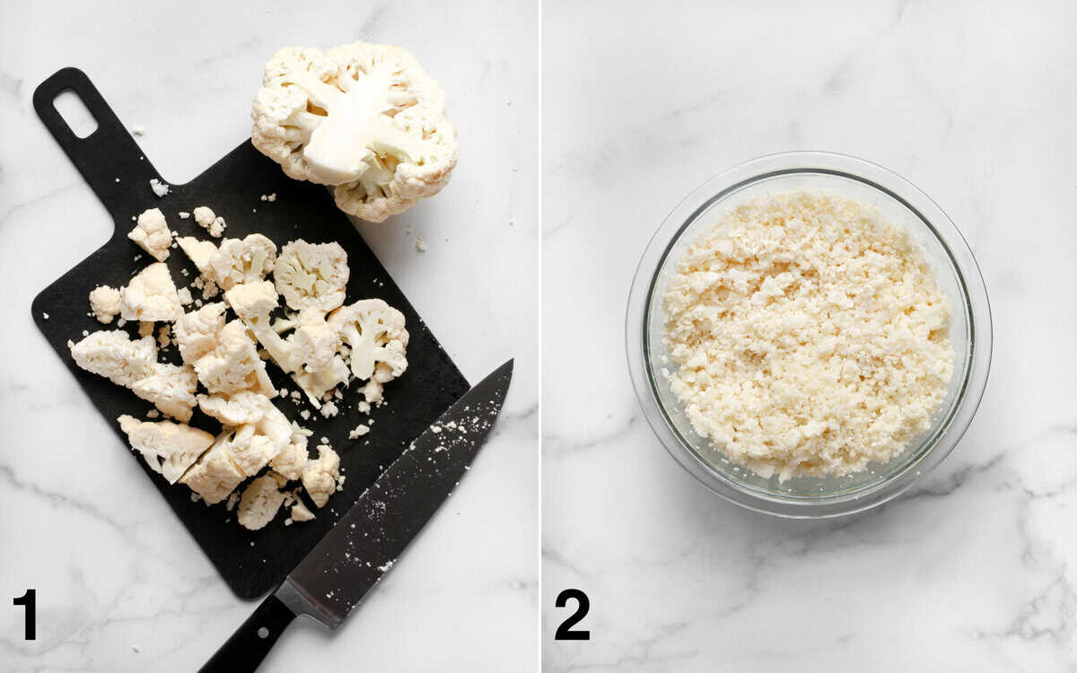 - Pay attention when you chop the cauliflower in the food processor. I like to use the pulse button. If you let the motor run, the cauliflower grains will be too fine and might be mushy and overprocessed. Also, look through the rice to see if there are unprocessed pieces that need to be pulsed again.